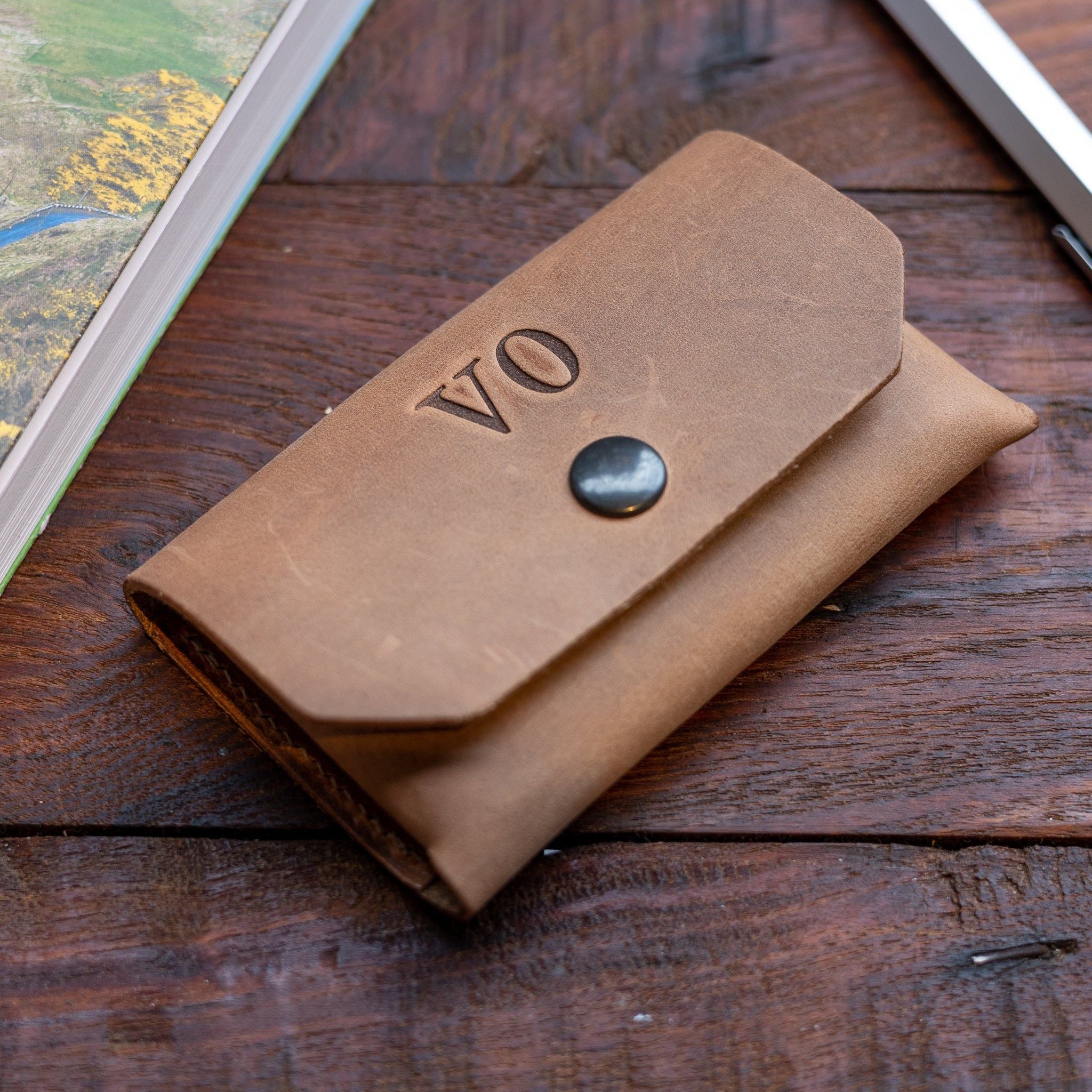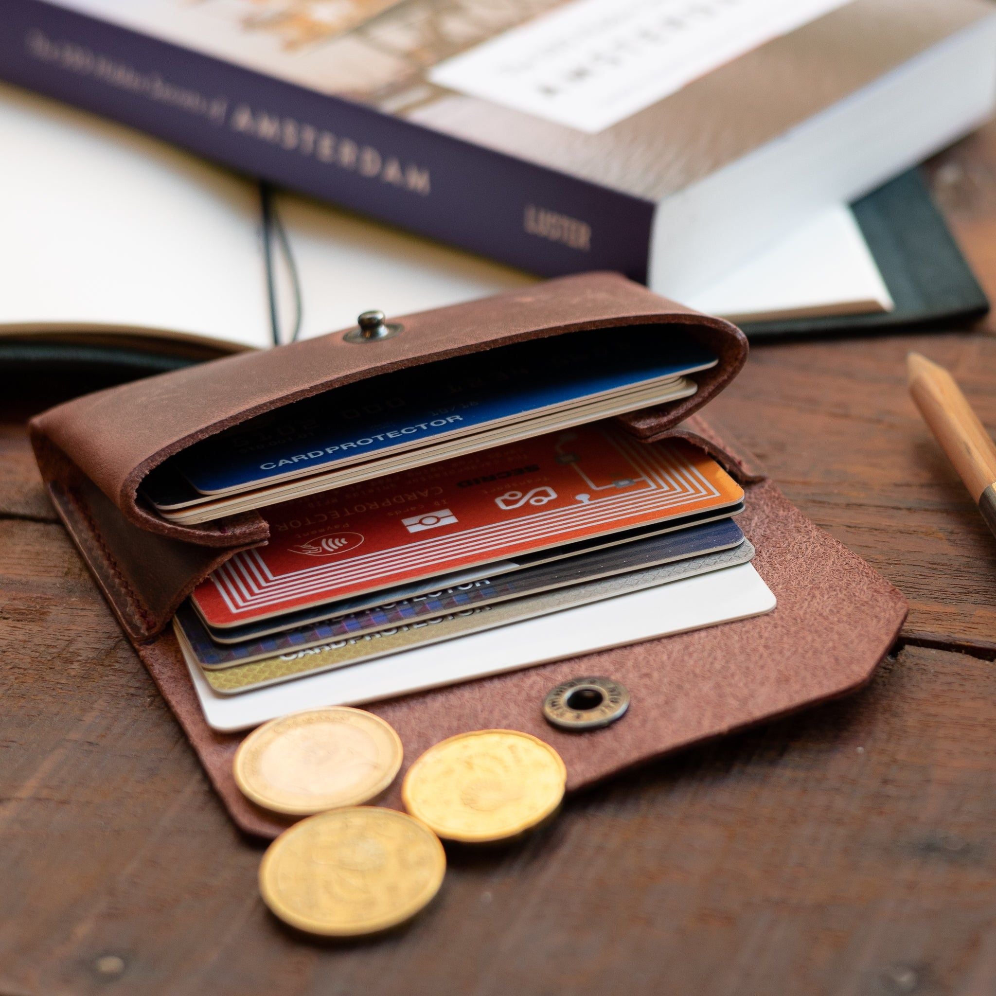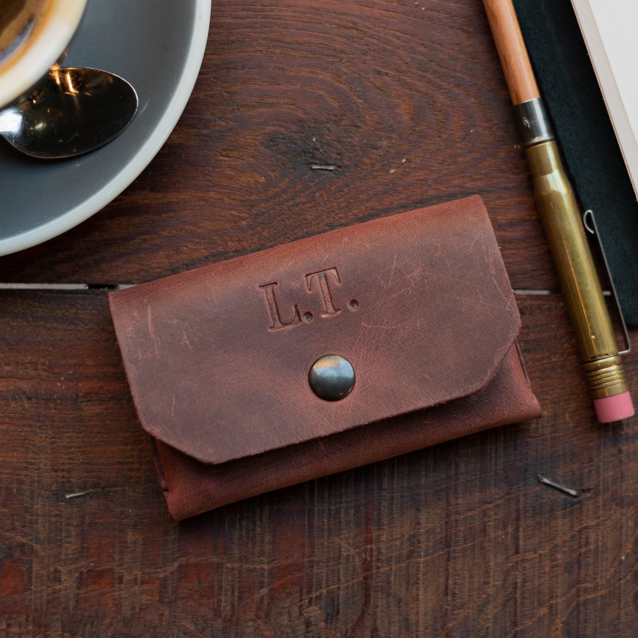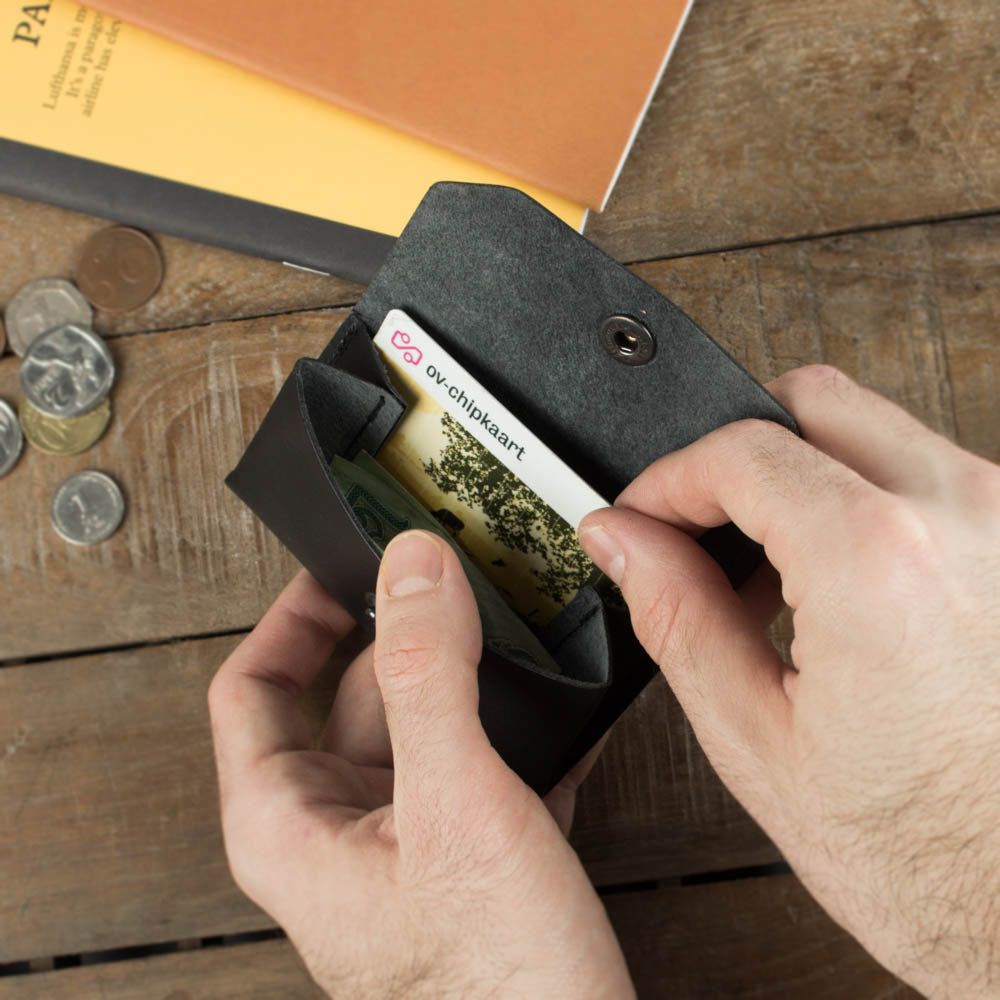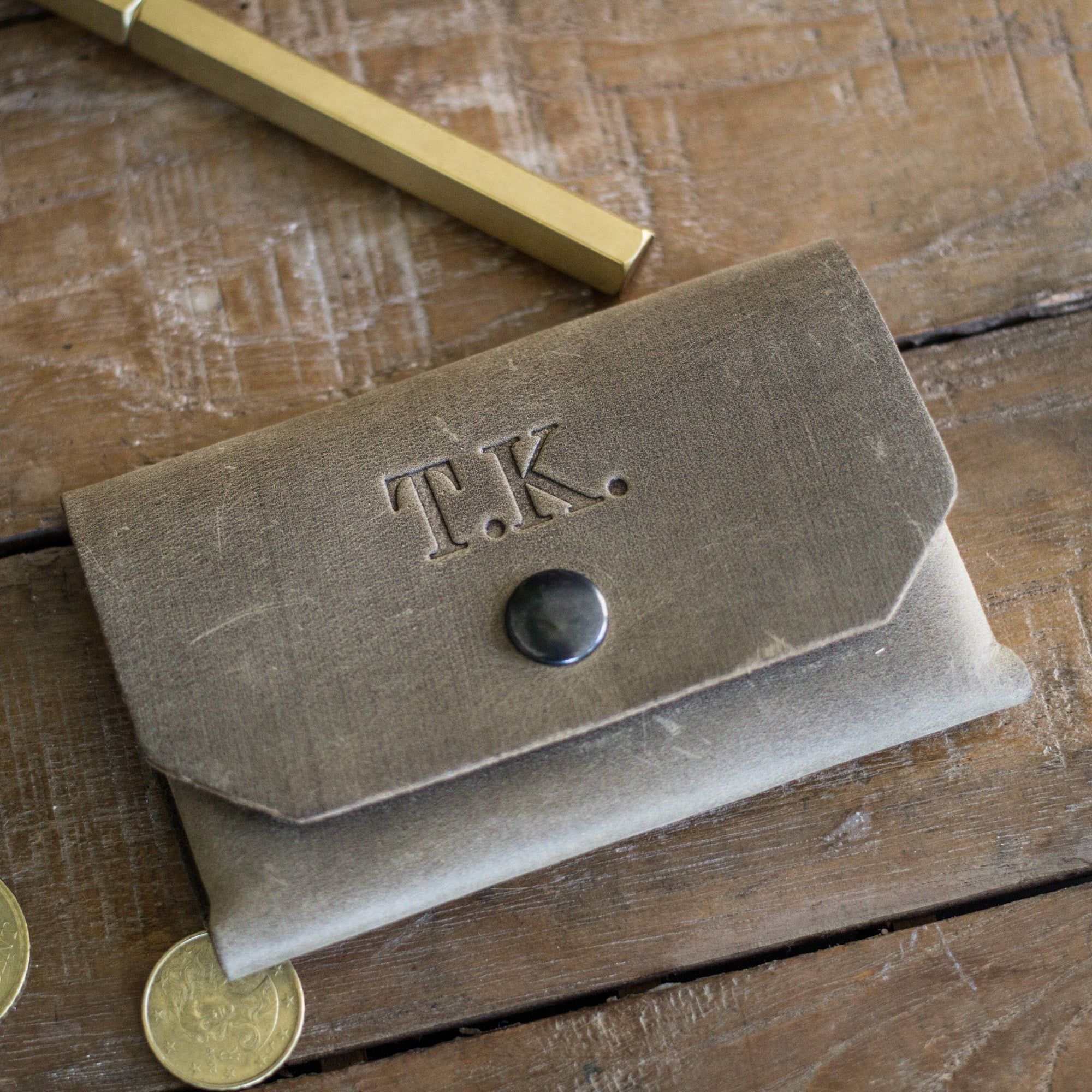 Milo Kartenhalter - ein schlichter Kartenhalter aus hochwertigem Rindsleder. Entworfen, um schön zu altern und wird in Holland handgefertigt. Machen Sie ihn mit Ihren Initialen einzigartig.