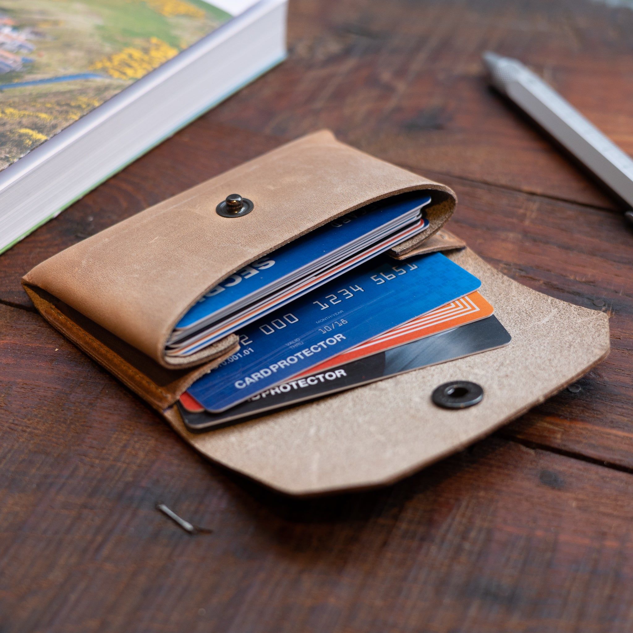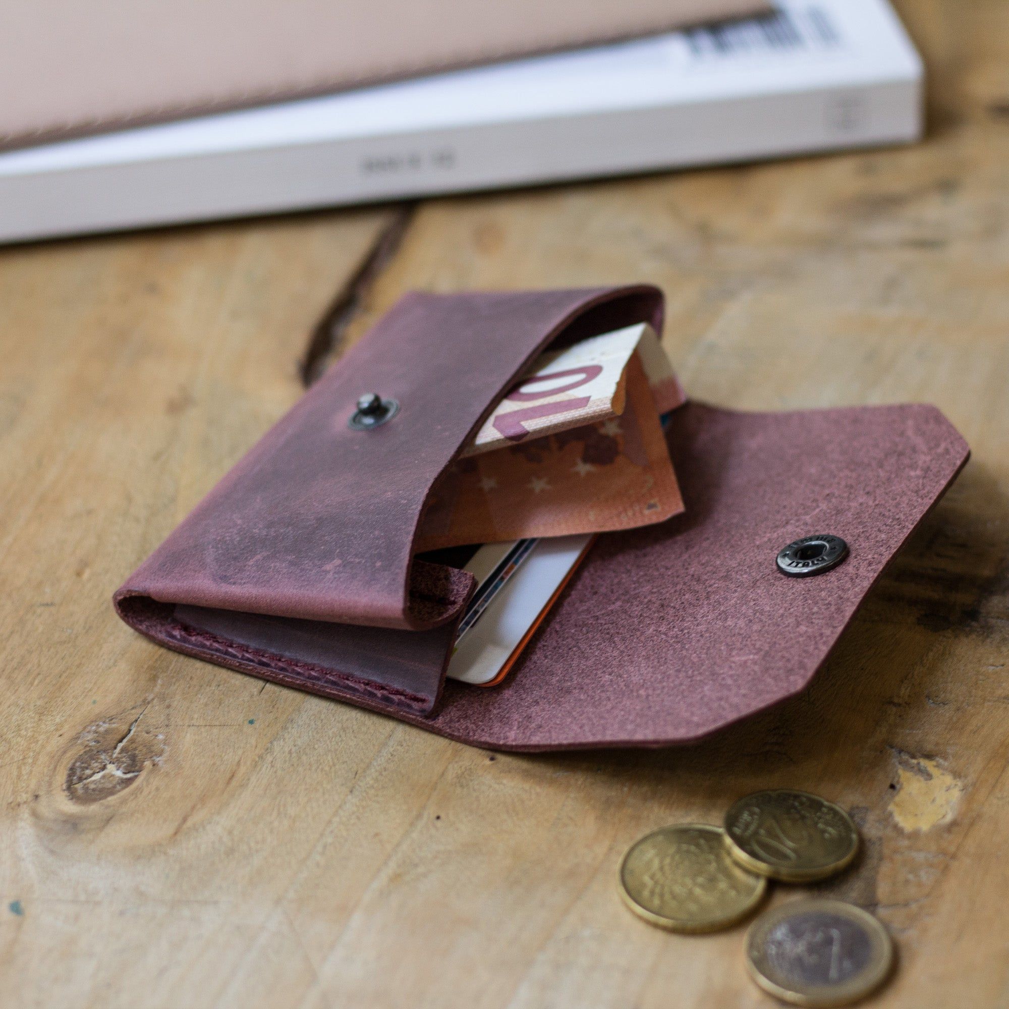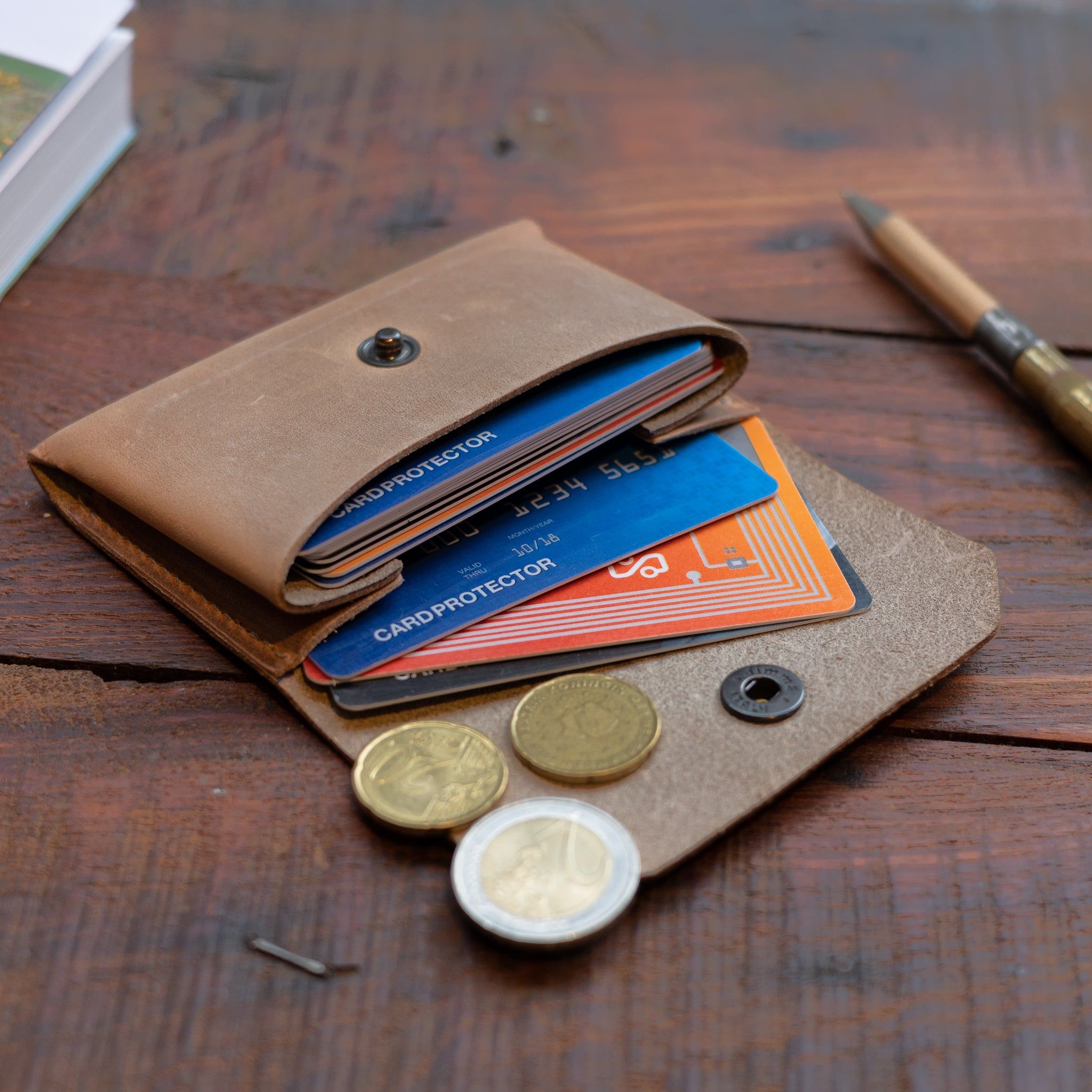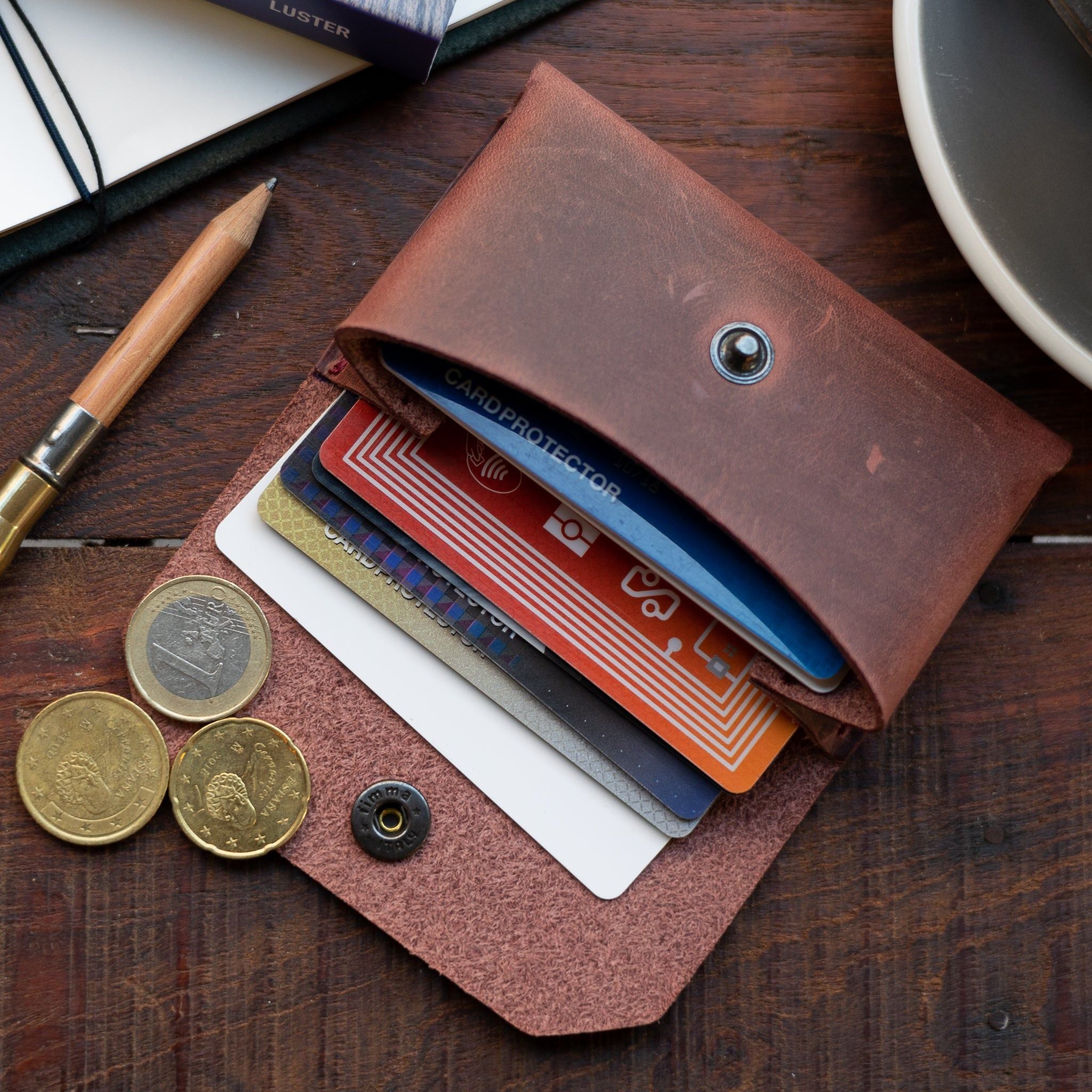 Milo Kartenhalter - ein schlichter Kartenhalter aus hochwertigem Rindsleder. Entworfen, um schön zu altern und wird in Holland handgefertigt. Machen Sie ihn mit Ihren Initialen einzigartig.