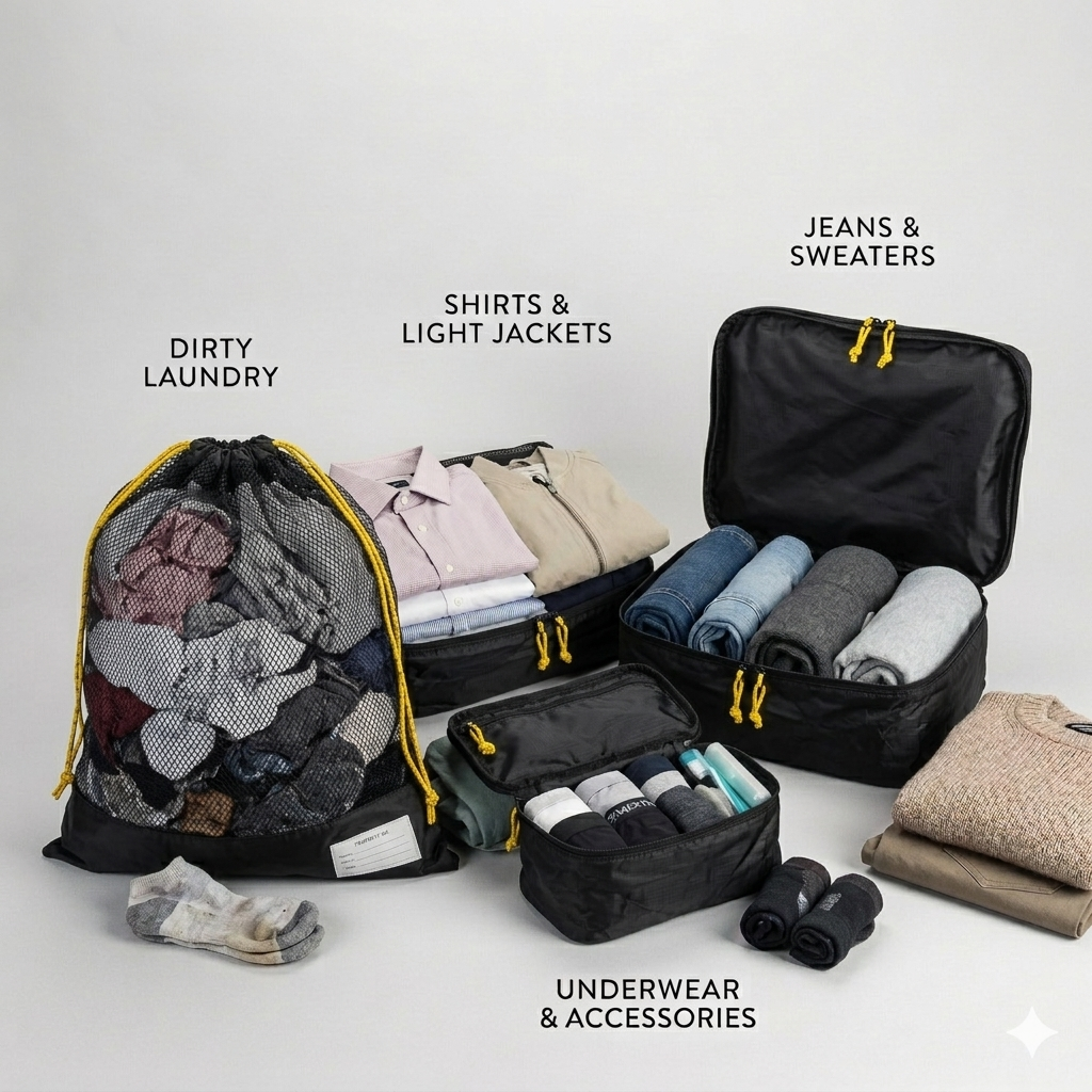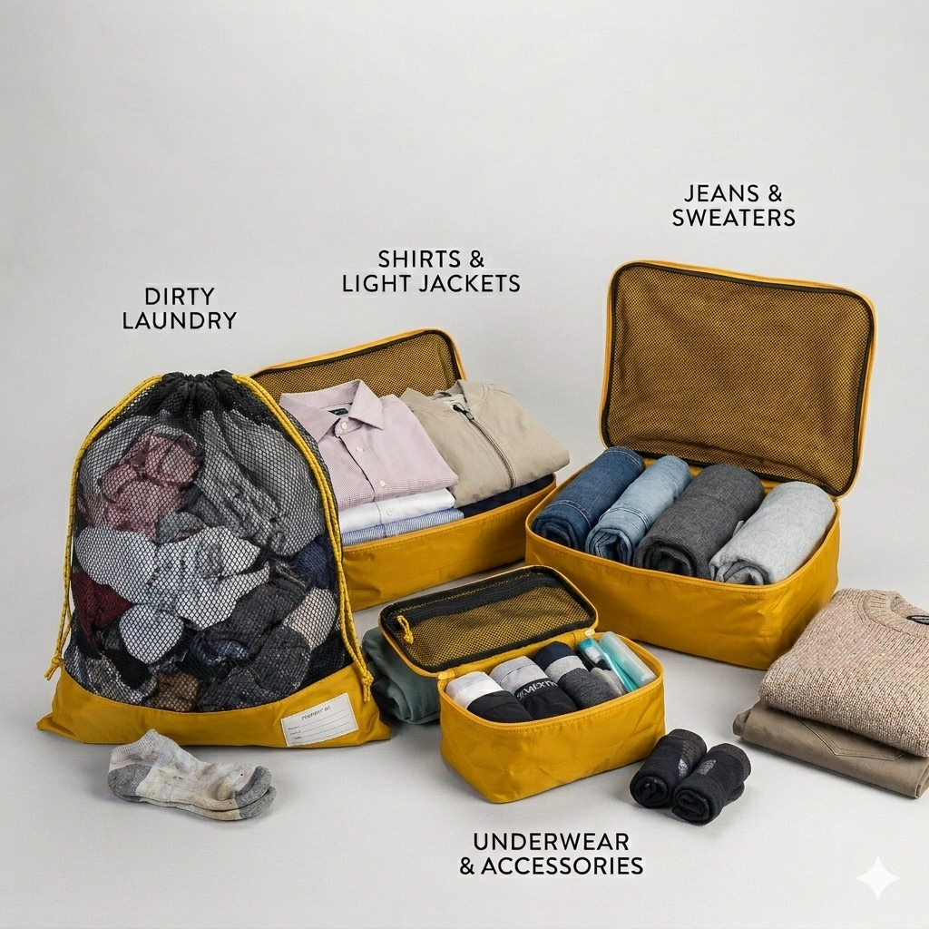 Das Packing Cubes Set ist super praktisch, um deine Kleidung zu sortieren und so mehr Platz in deinem Gepäck für deine Reiseabenteuer zu schaffen.
