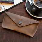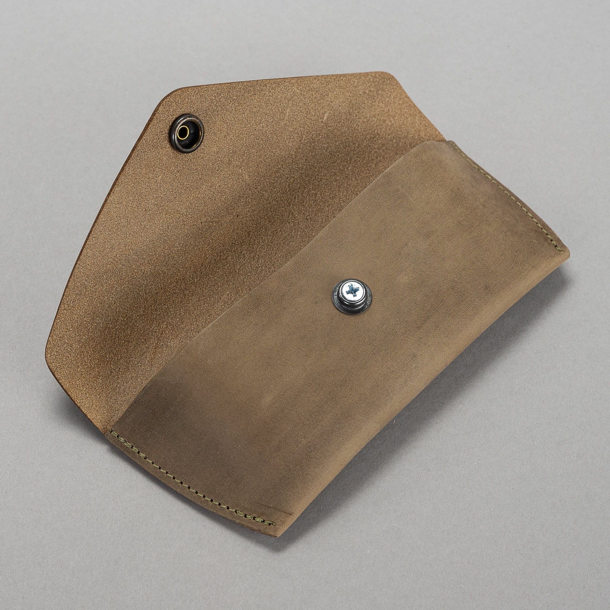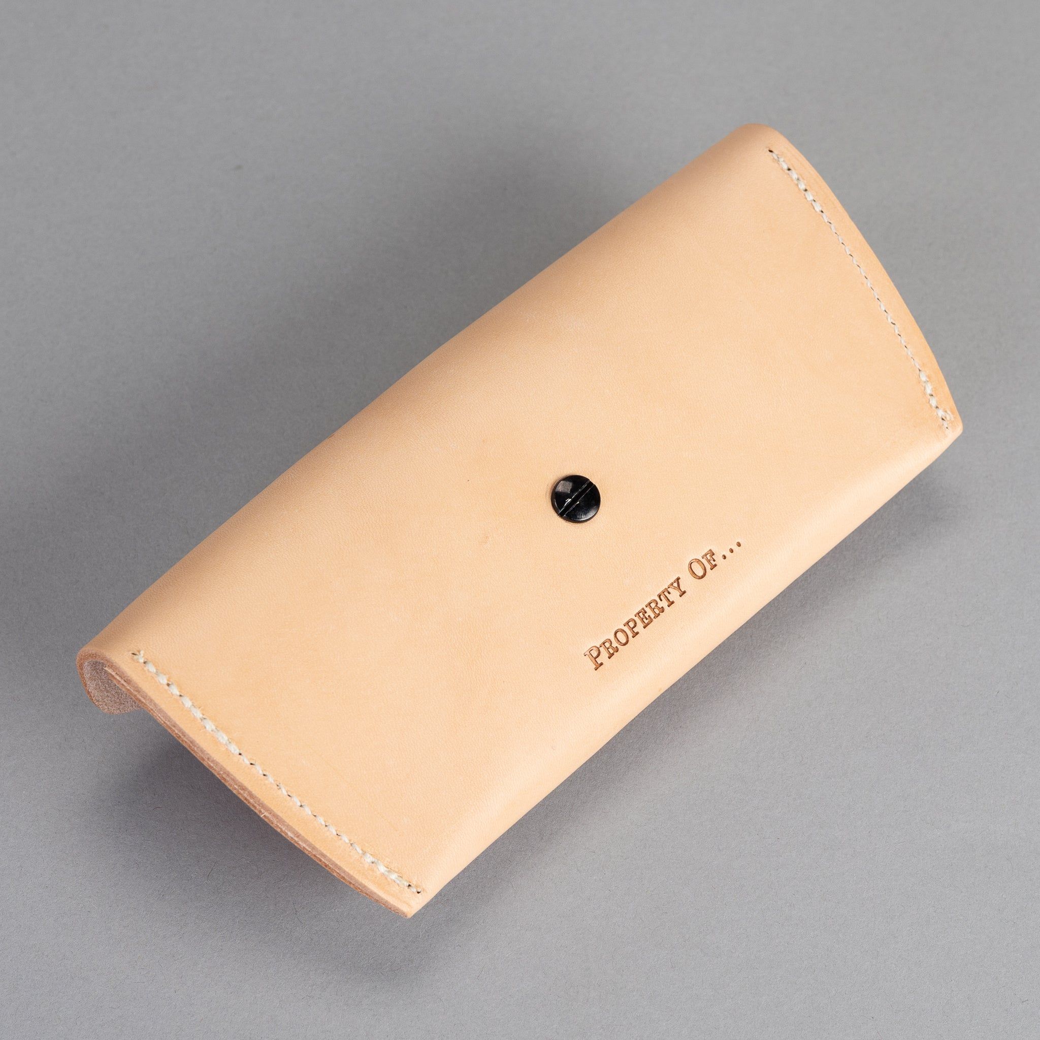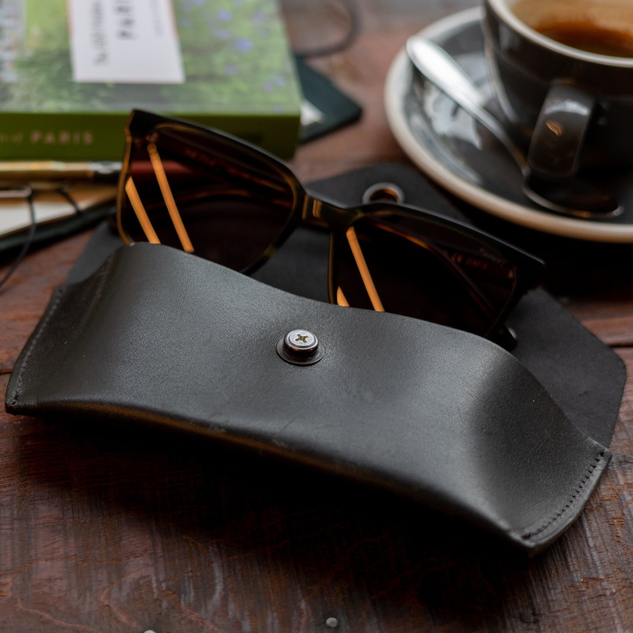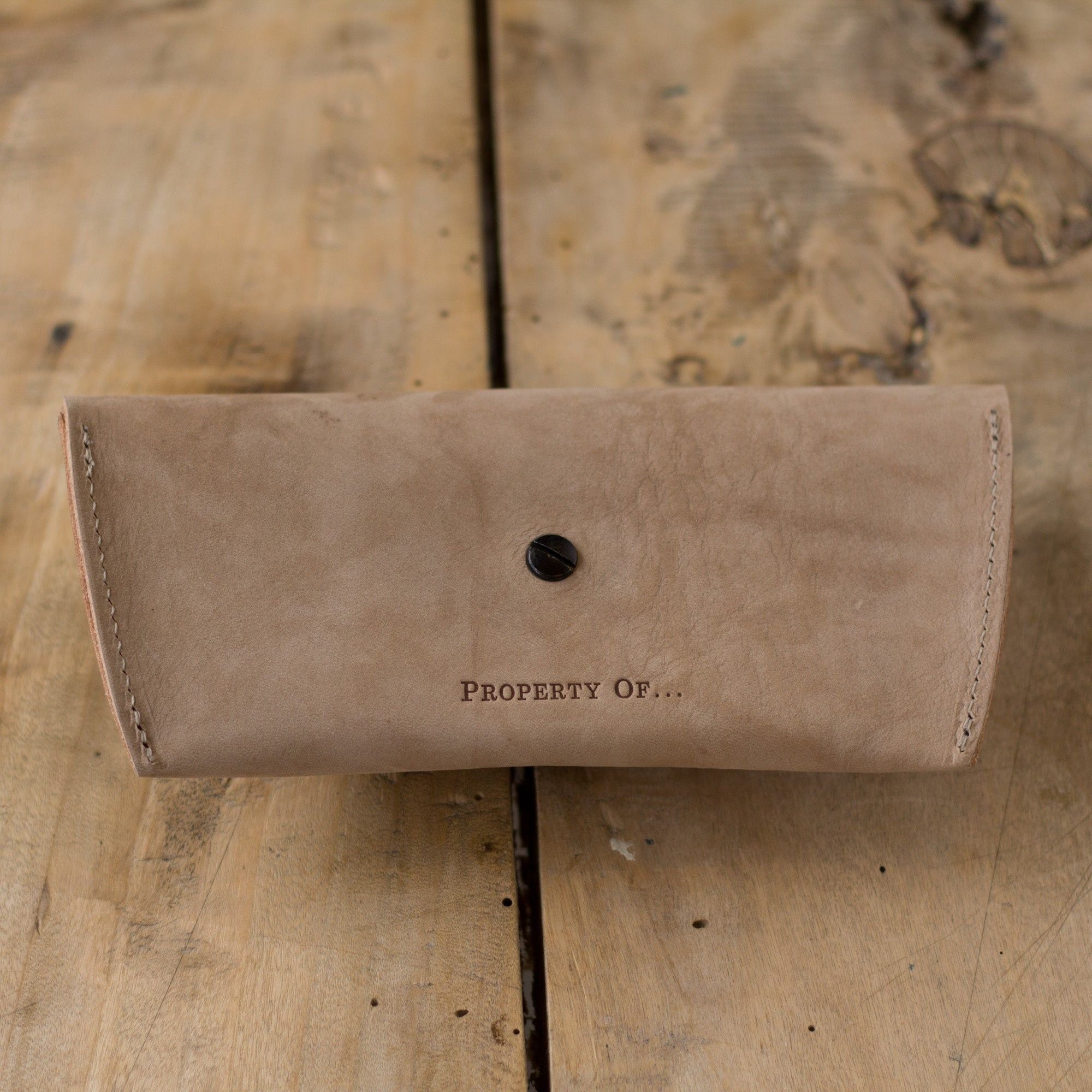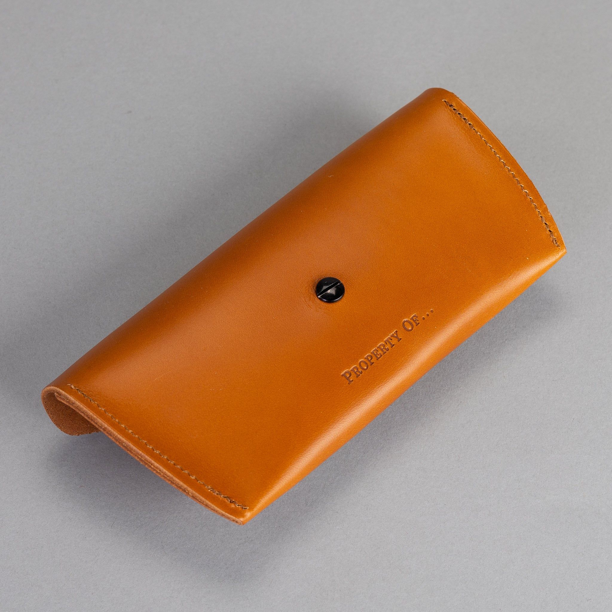 Robin-Sonnenbrillenetui aus robustem, hochwertigem, pflanzlich gegerbtem Rindsleder. Hergestellt in Holland und entworfen, um schön zu altern. Machen Sie es mit Ihren Initialen einzigartig.