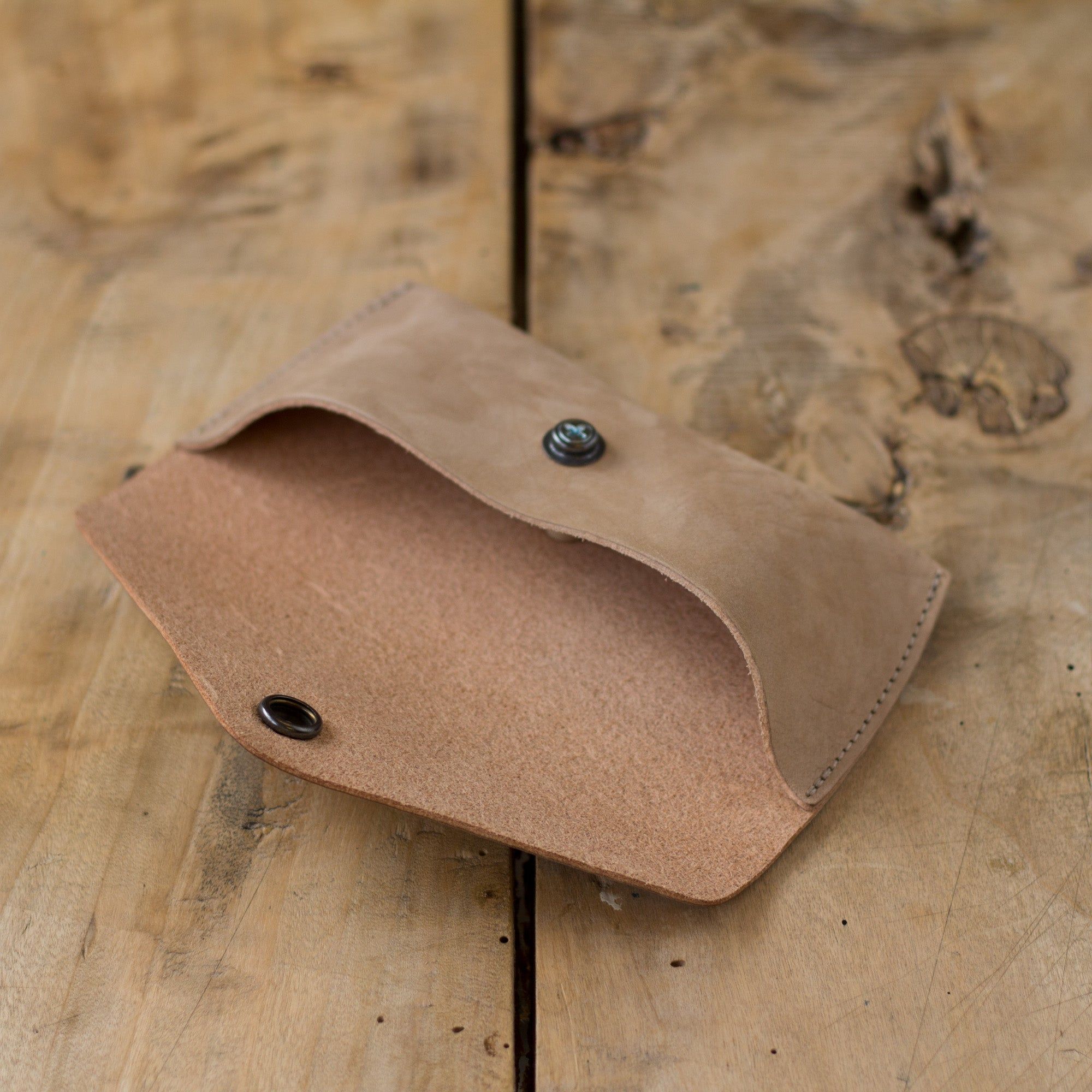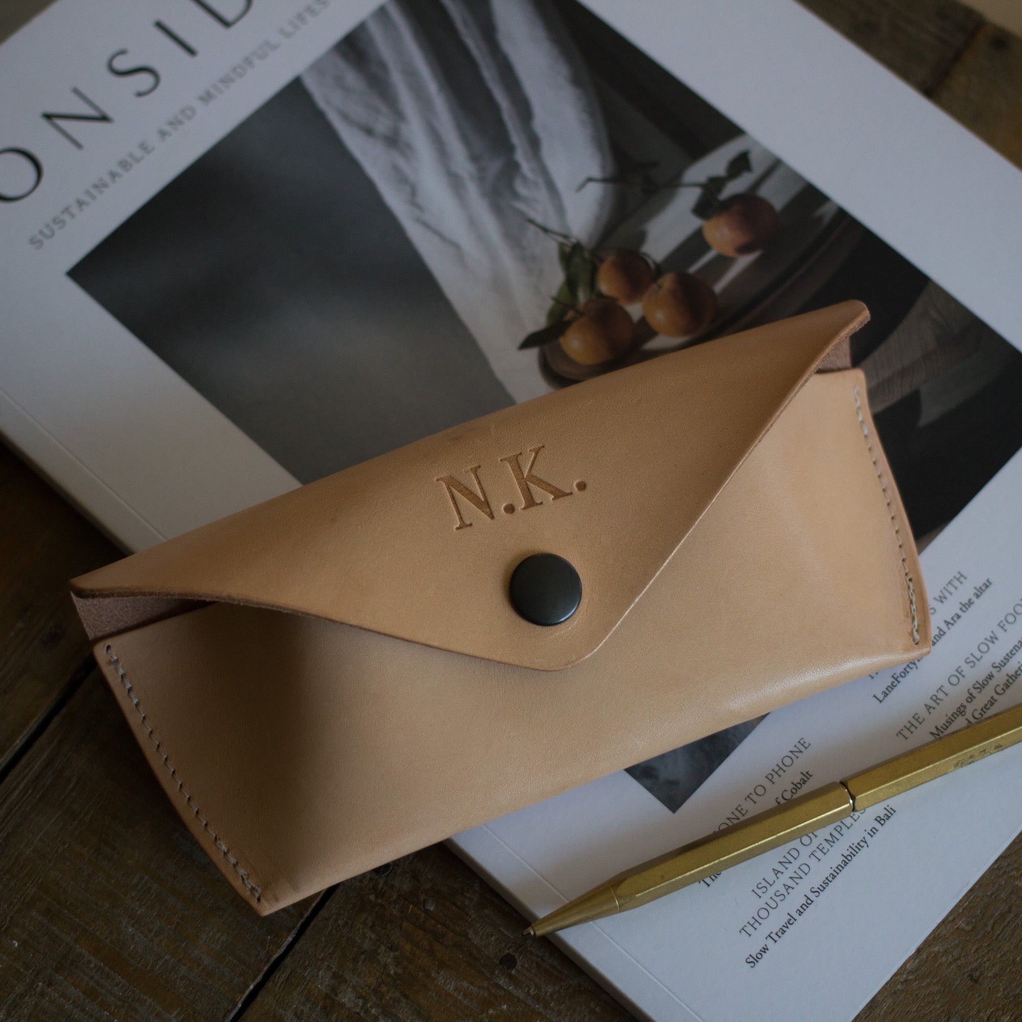 Sonnenbrillenetui aus pflanzlich gegerbtem Leder
