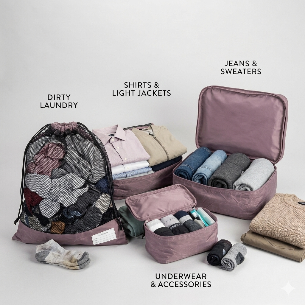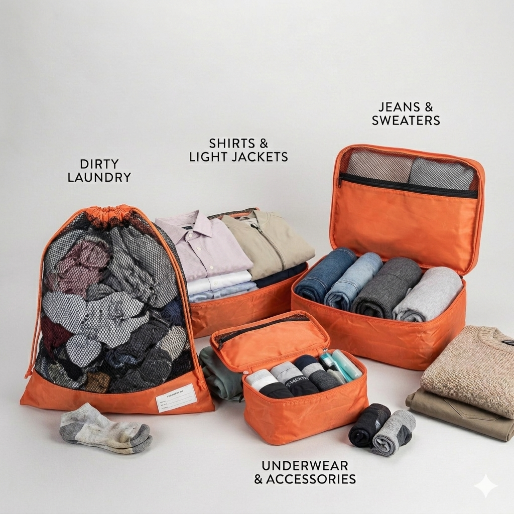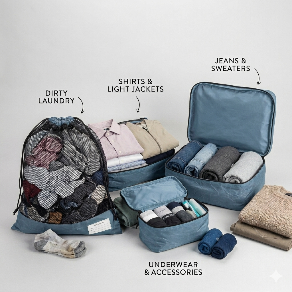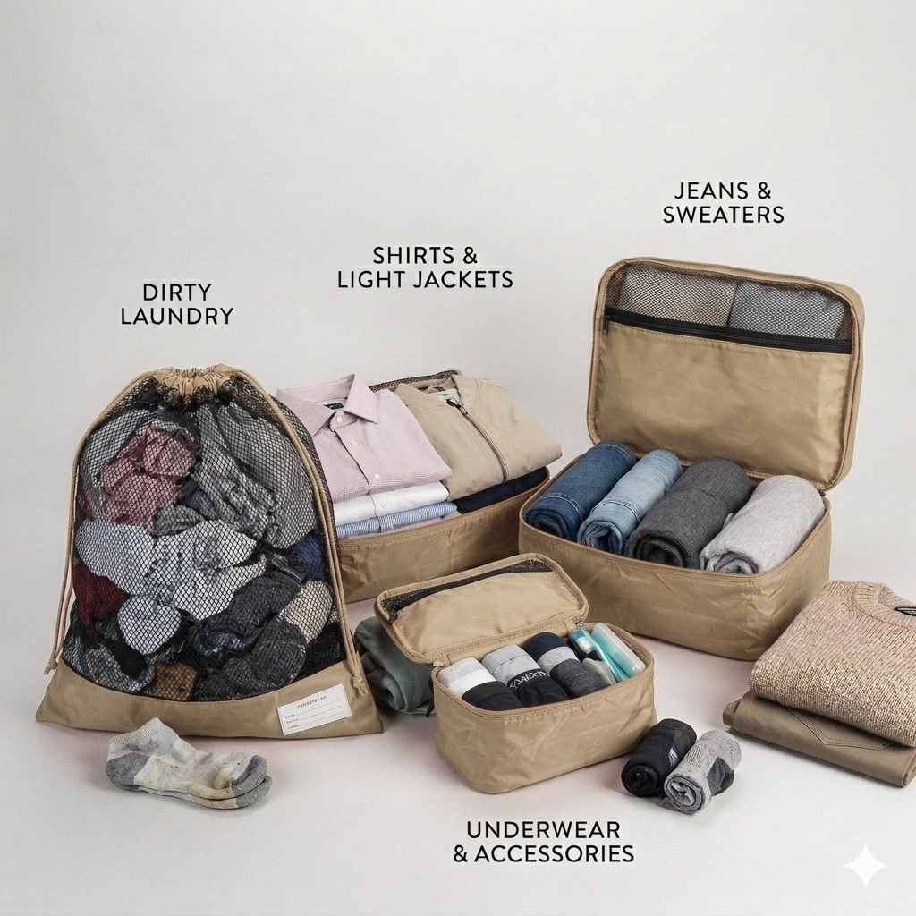 Das Packing Cubes Set ist super praktisch, um deine Kleidung zu sortieren und so mehr Platz in deinem Gepäck für deine Reiseabenteuer zu schaffen.