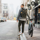 Der Lenny Bike Pack ist ein toller Alltagsrucksack. Er hat einen zeitlosen, sportlichen Look und begleitet Sie vom Büro über das Fitnessstudio bis hin zu einem schnellen Wochenendausflug. Er hat ein gepolstertes 15"-Laptopfach. Der Stoff besteht aus recycelten PET-Flaschen mit einer Wachsschicht, um ihn noch wasserdichter zu machen. Damit Sie nachts sicher unterwegs sind, haben wir auf dem Rücken und den Schultergurten hochreflektierende Streifen angebracht. Der Lenny Bike Pack ist (wie der Rest der Amsterdam Serie) komplett vegan.